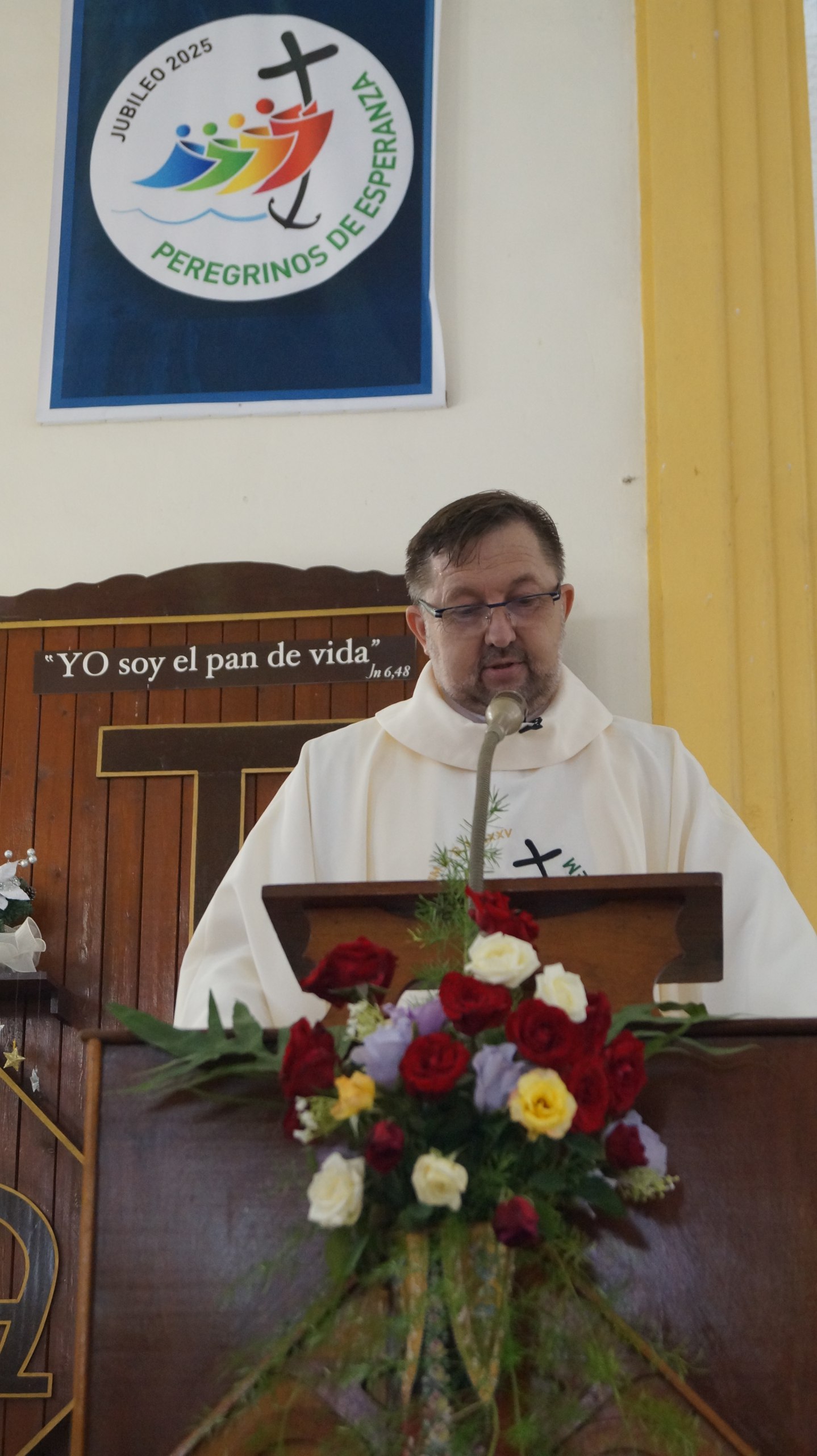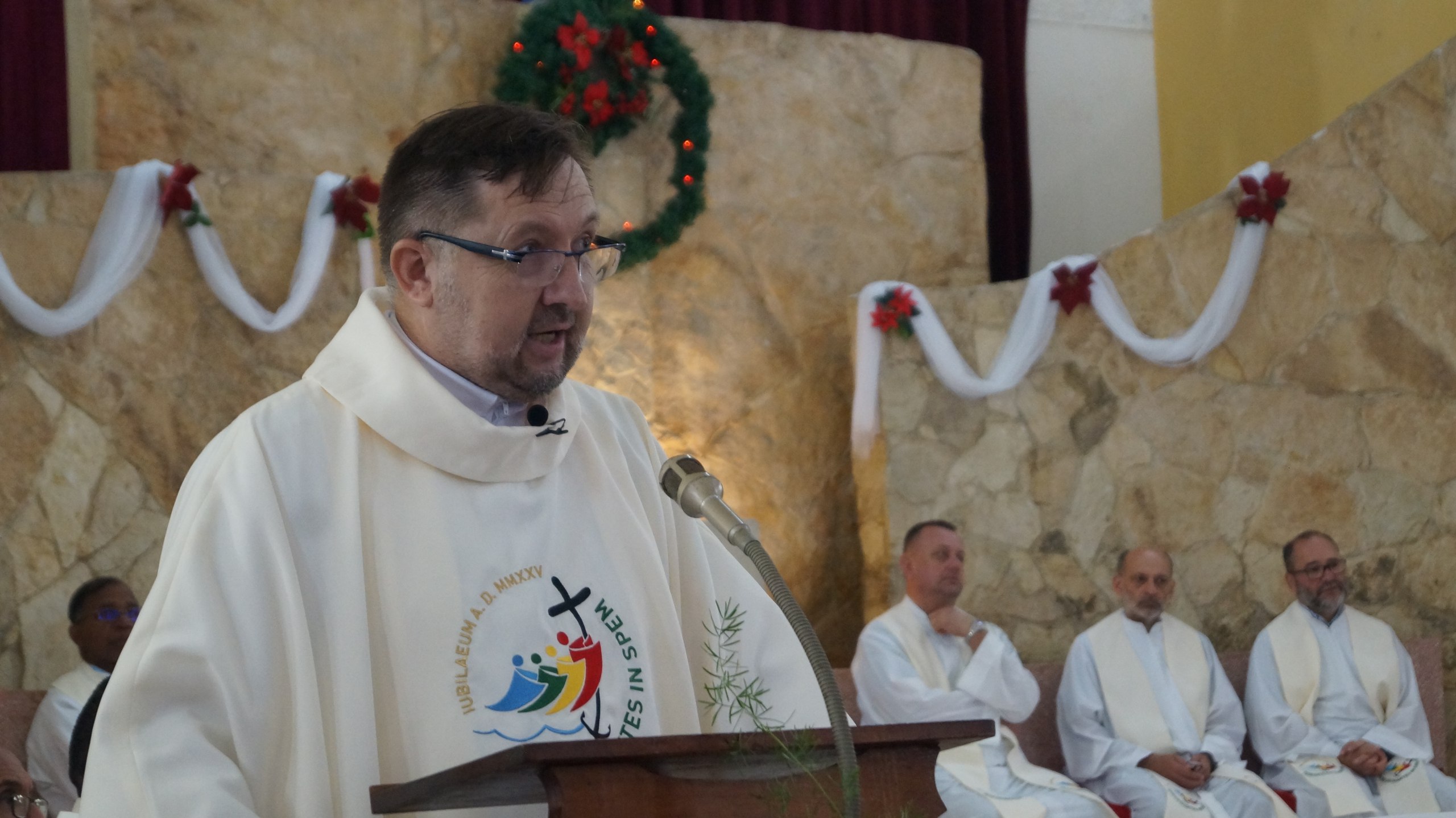 Les doy una cordial bienvenida a todos. Con las palabras de bienvenida me acerco a los sacerdotes, diáconos permanentes con sus familiares, religiosas y fieles de todas nuestras parroquias, Zonas Pastorales y comunidades que pertenecen a cada parroquia. Un cordial saludo a las Autoridades Civiles. Que la abundancia de las gracias jubilares sea compartida por todos nosotros aquí presentes. Que estas gracias lleguen también a sus familias y seres queridos, tanto aquí en el país como en el mundo.