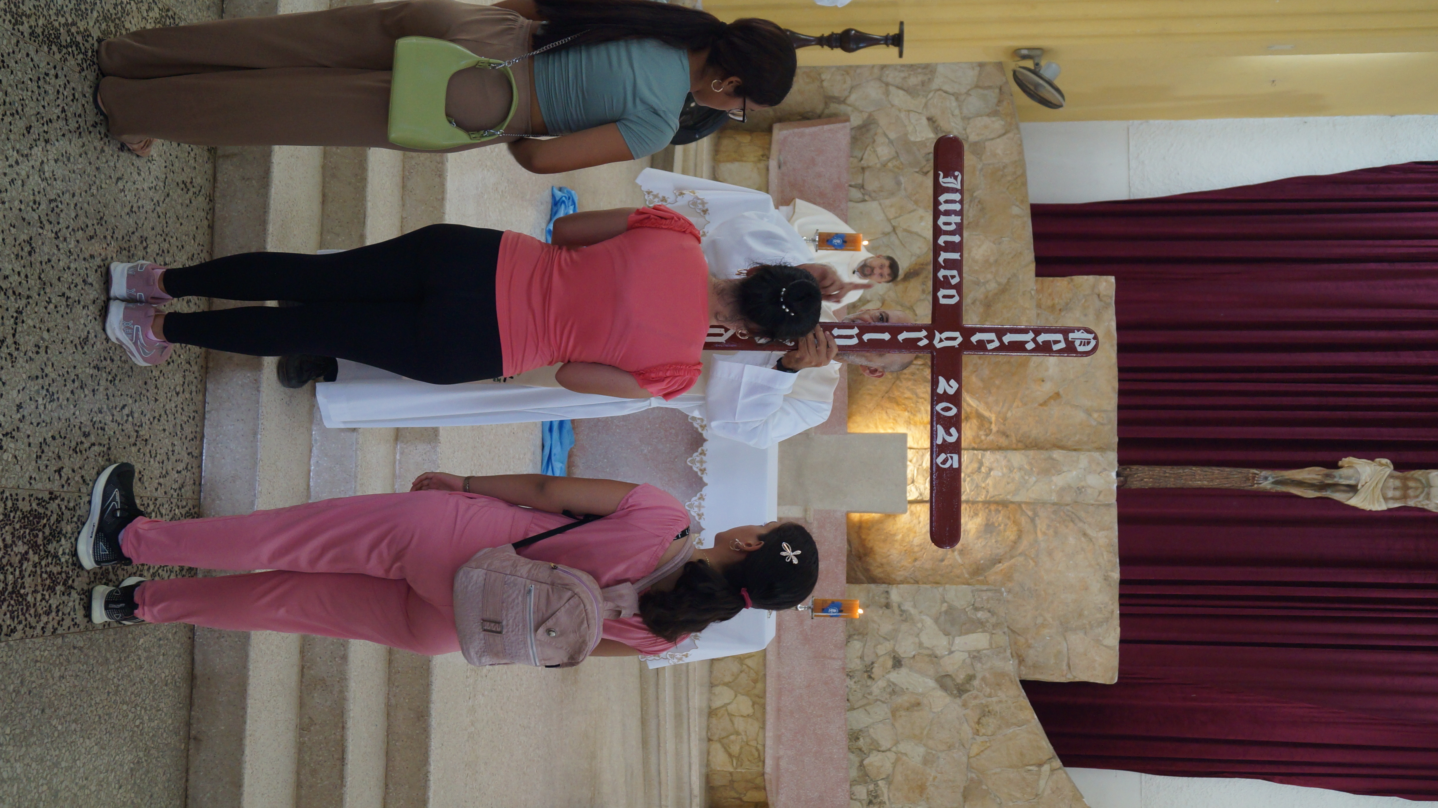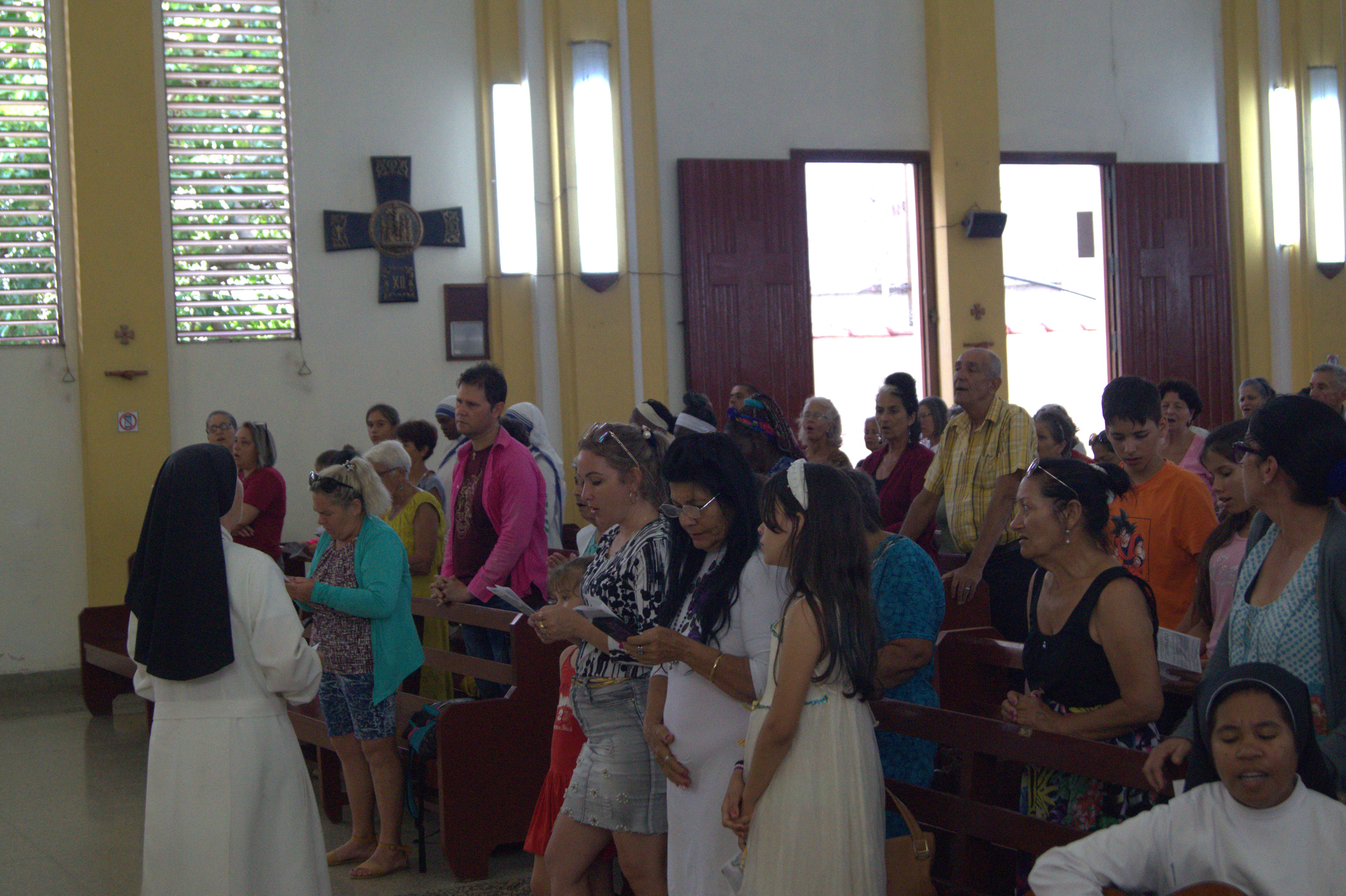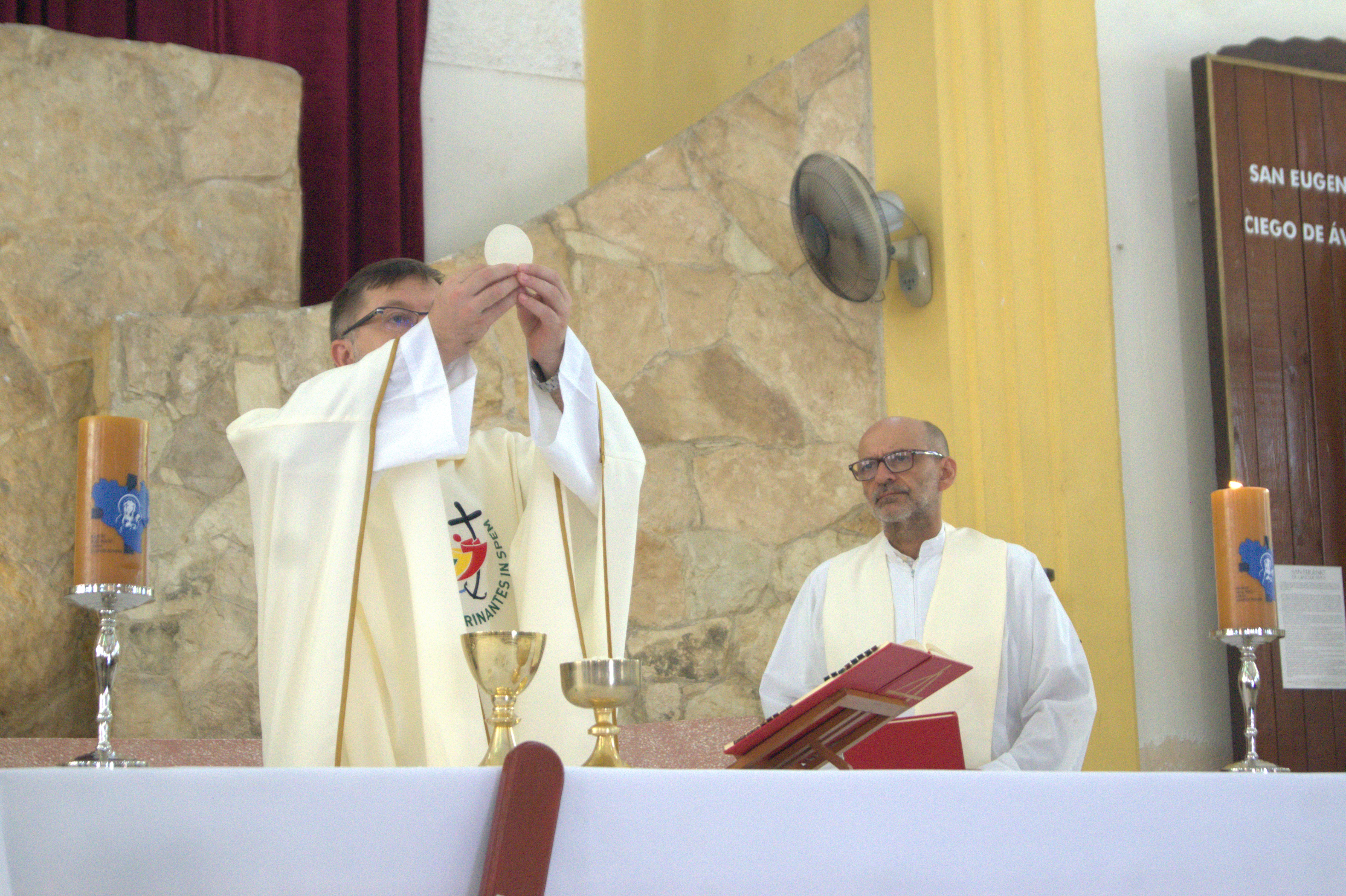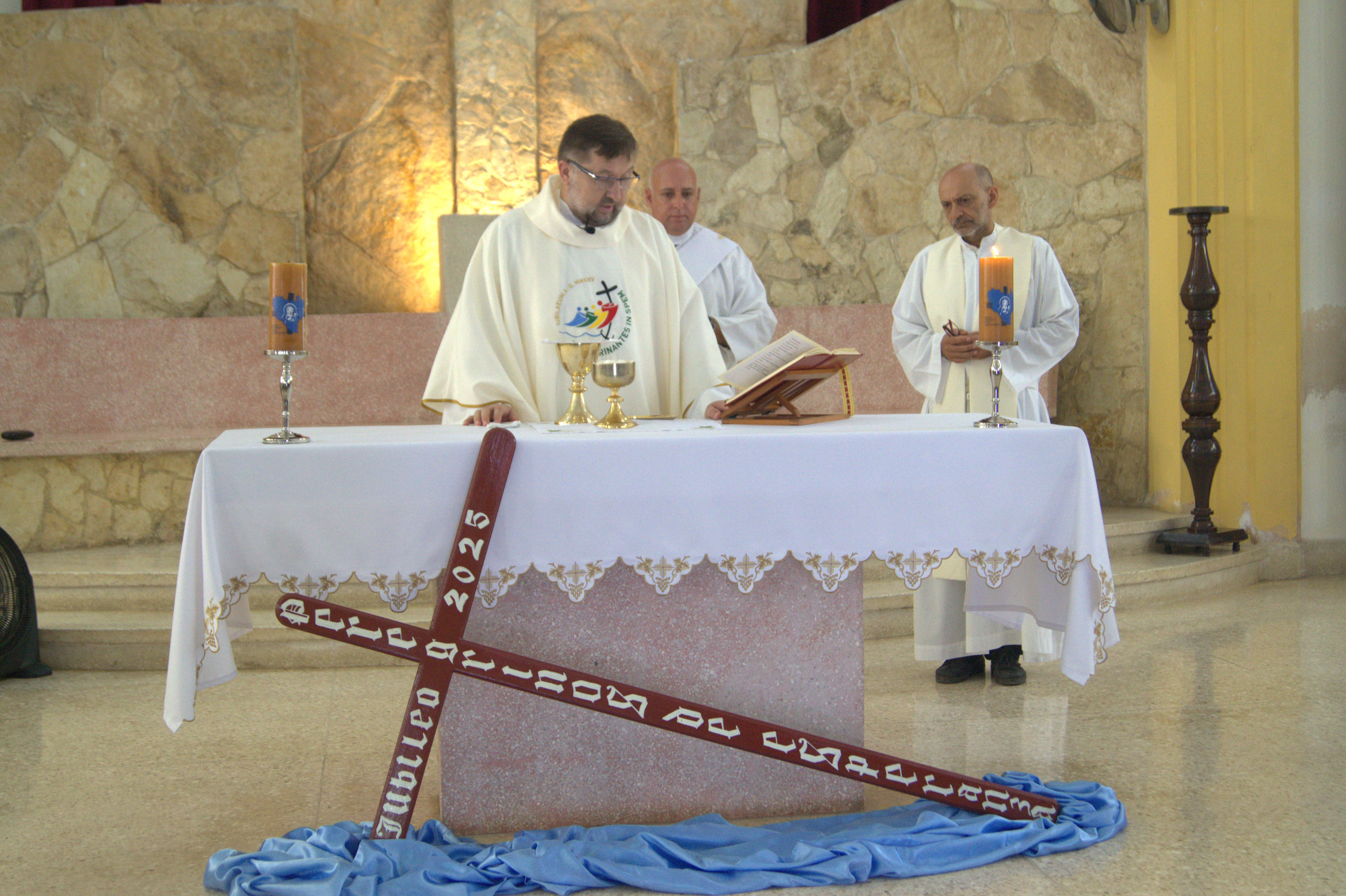 Peregrinación hacia el Templo Jubilar precedidos por el estandarte con la imagen de María Inmaculada de Chambas