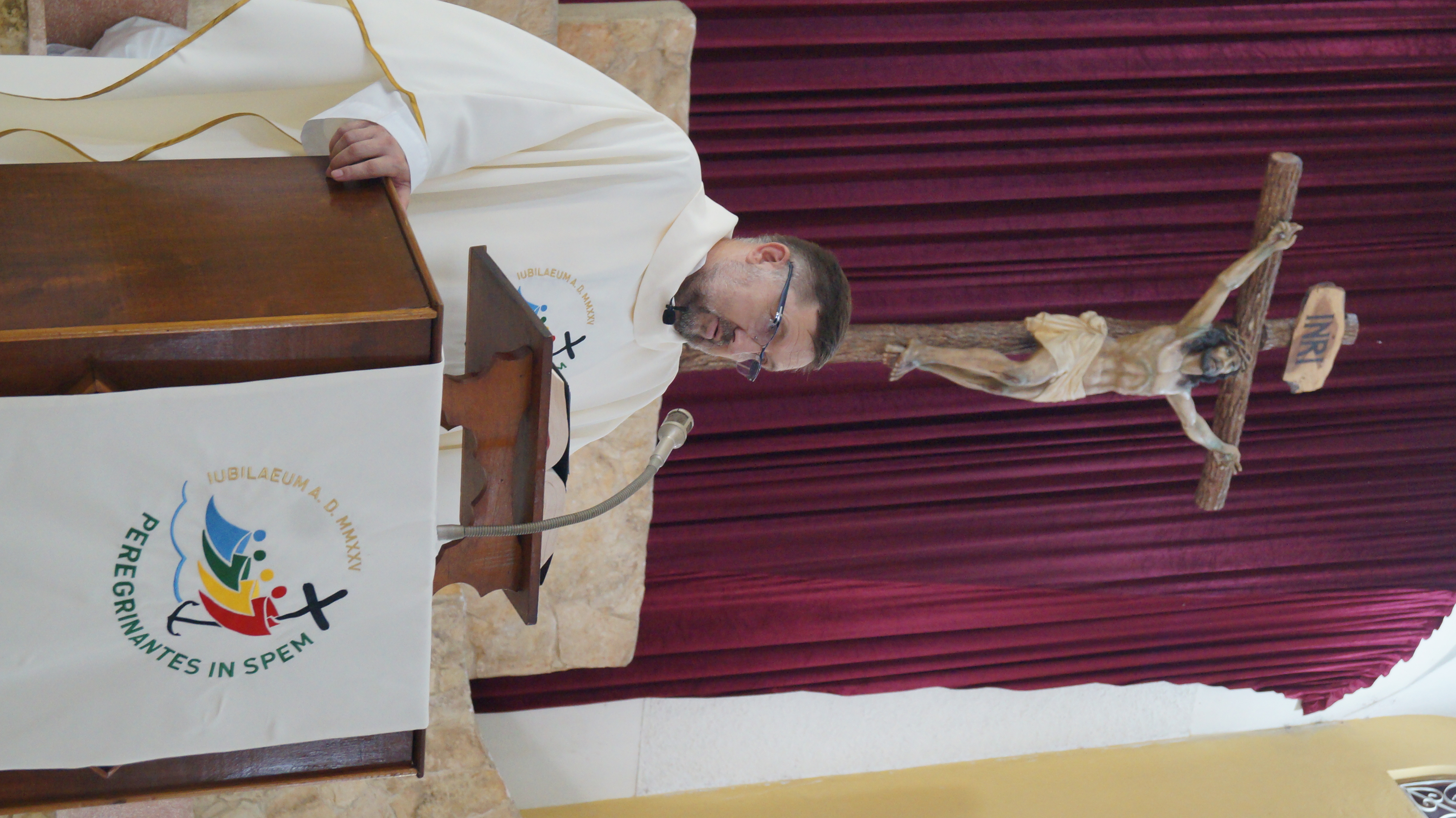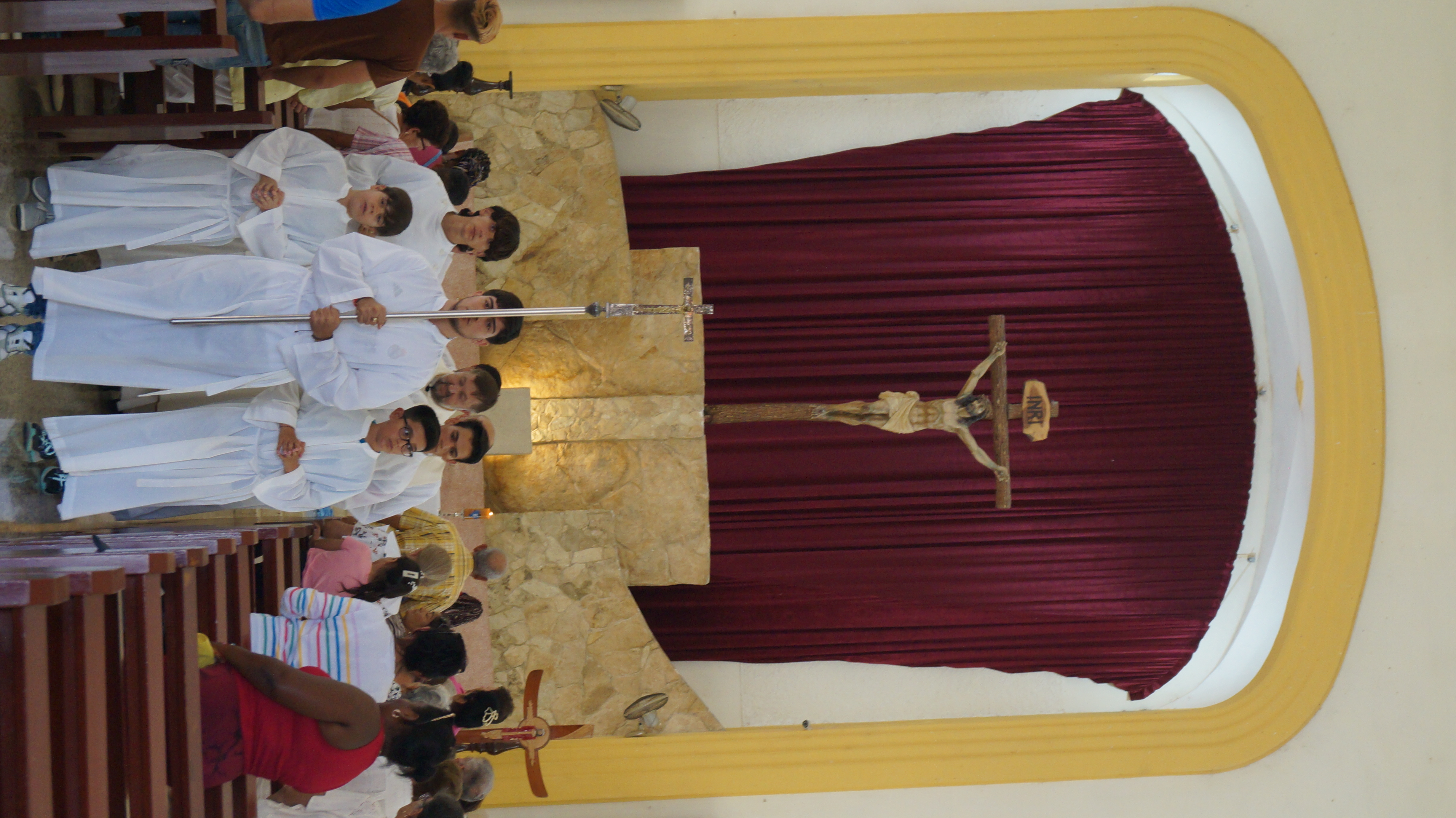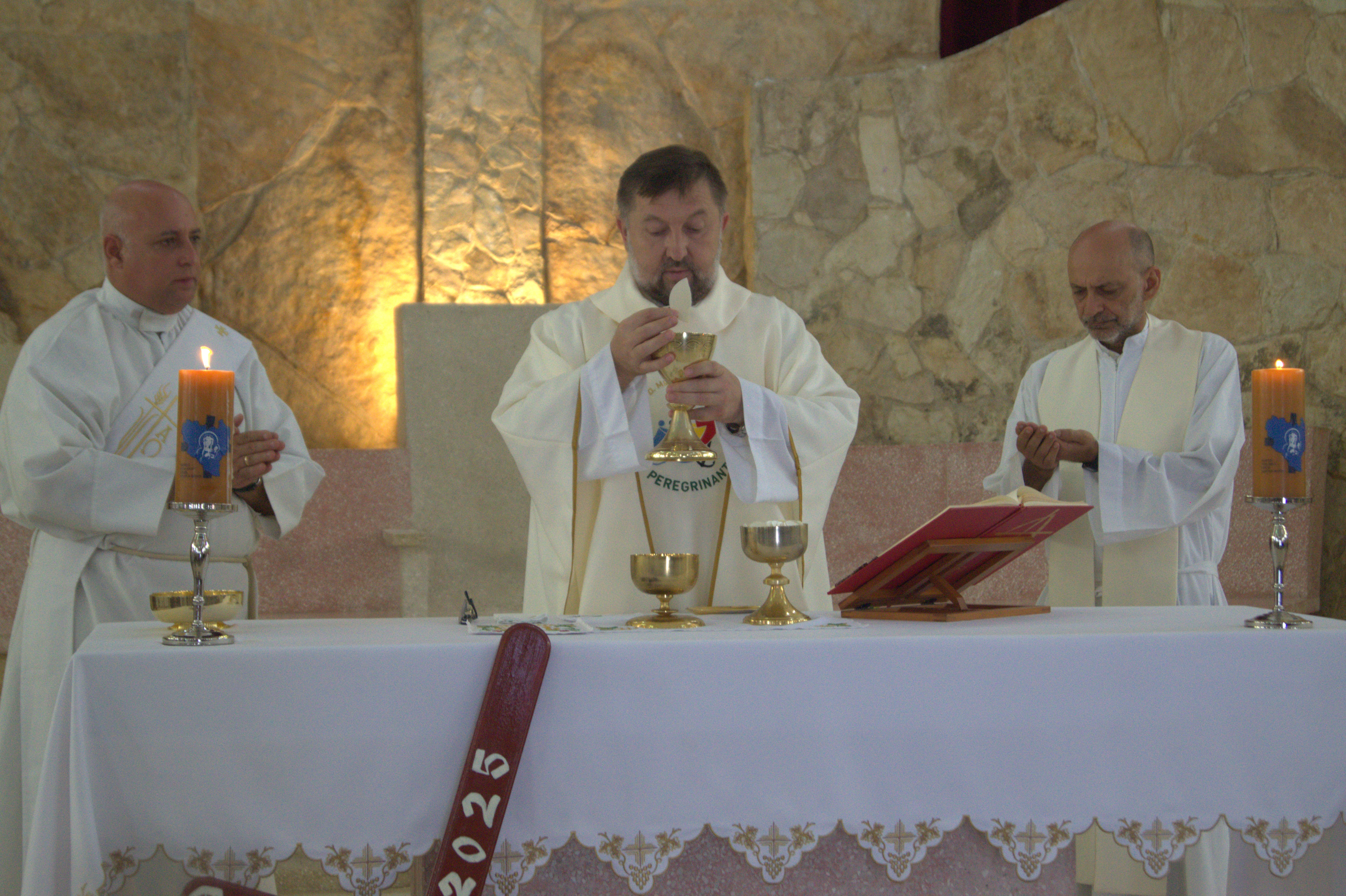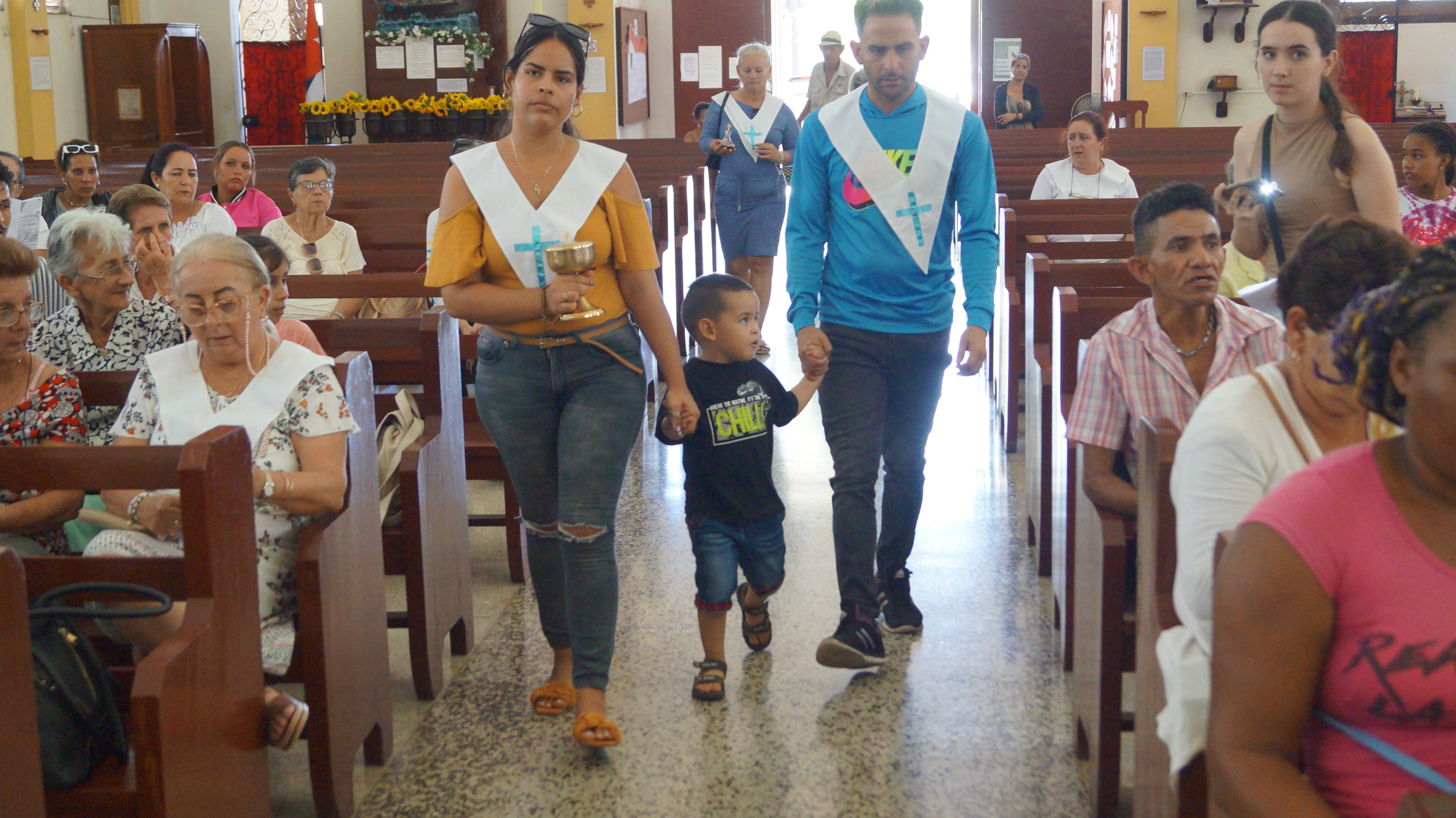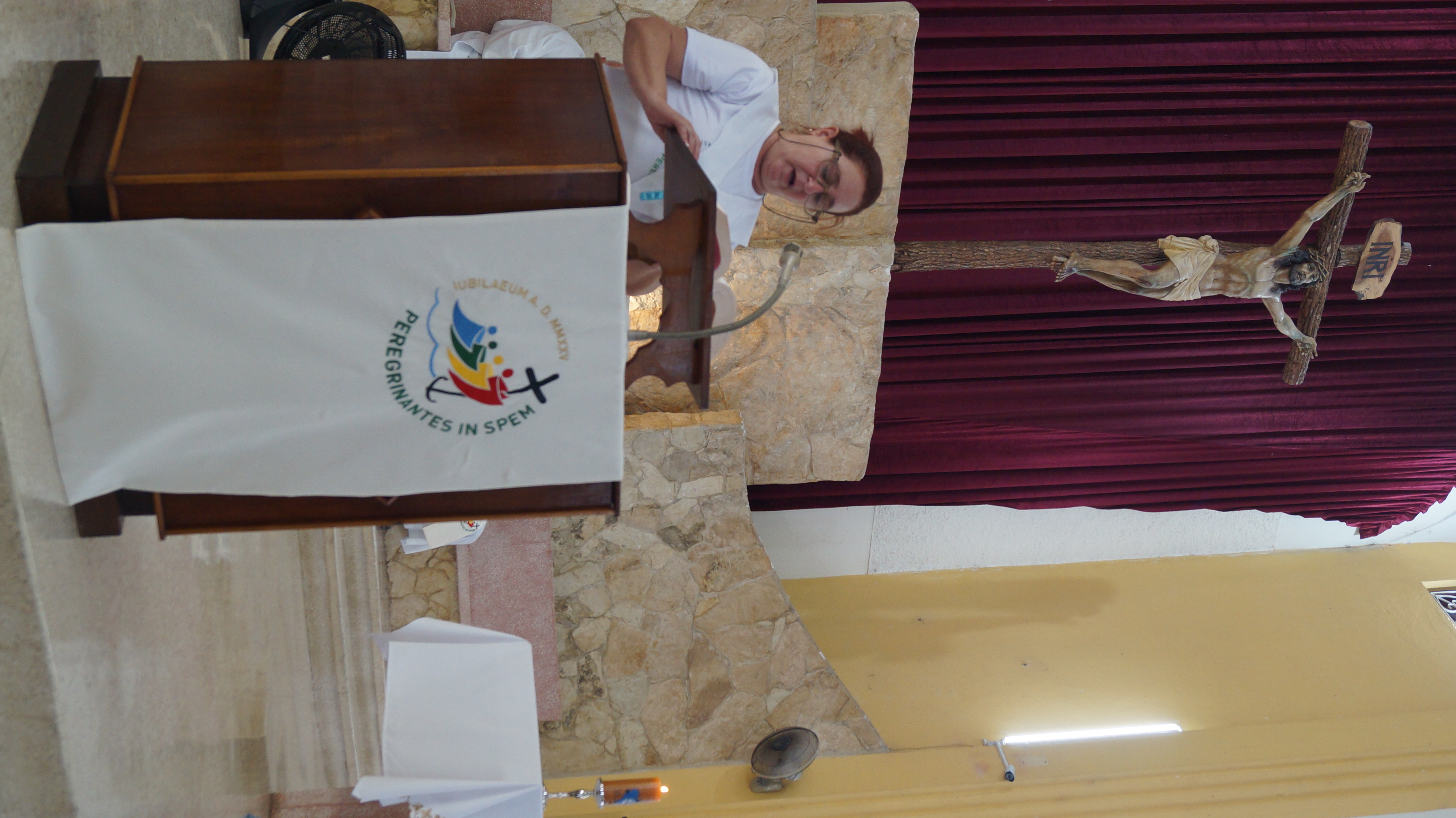Peregrinación hacia el Templo Jubilar precedidos por el estandarte con la imagen de María Inmaculada de Chambas