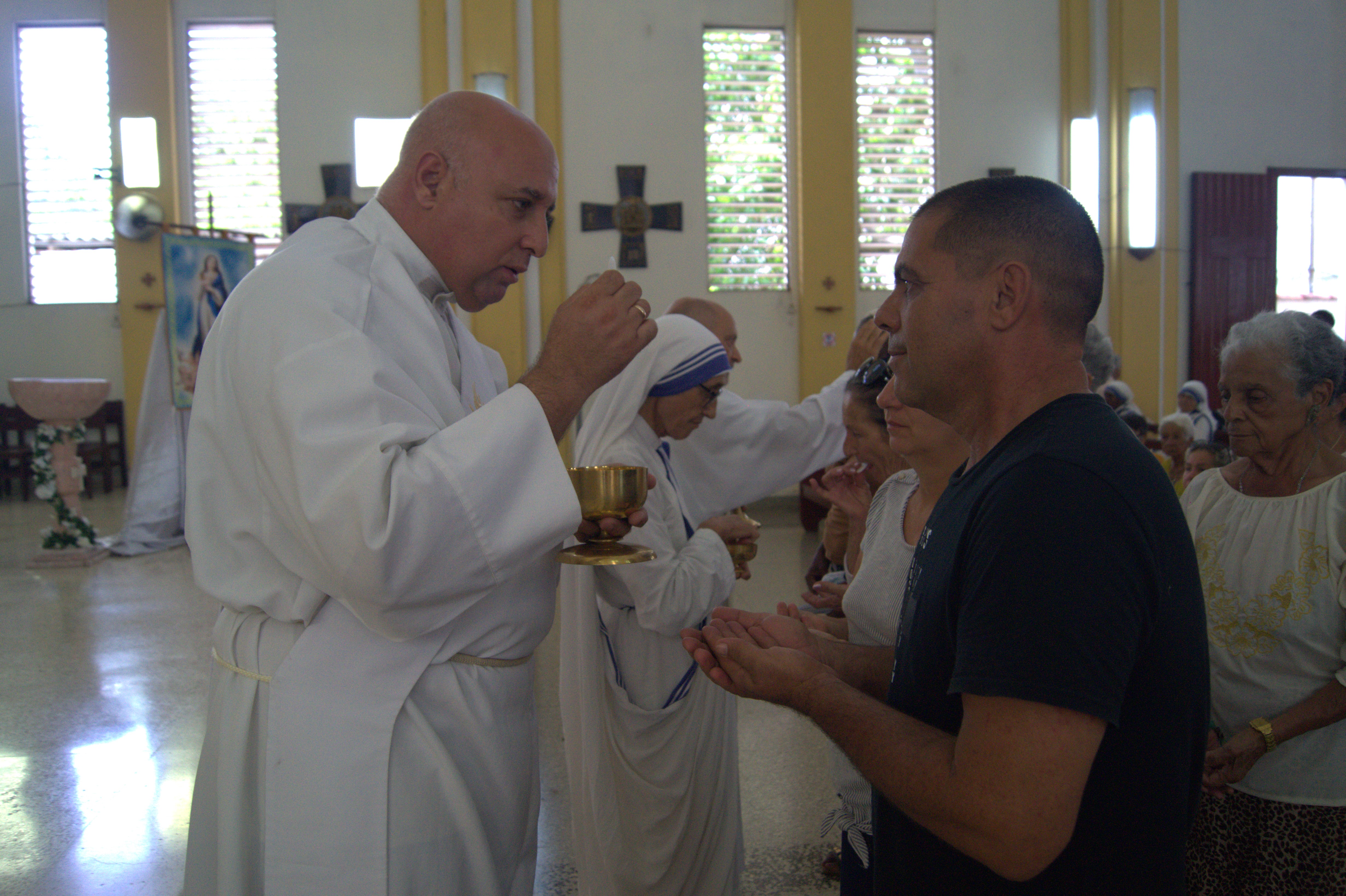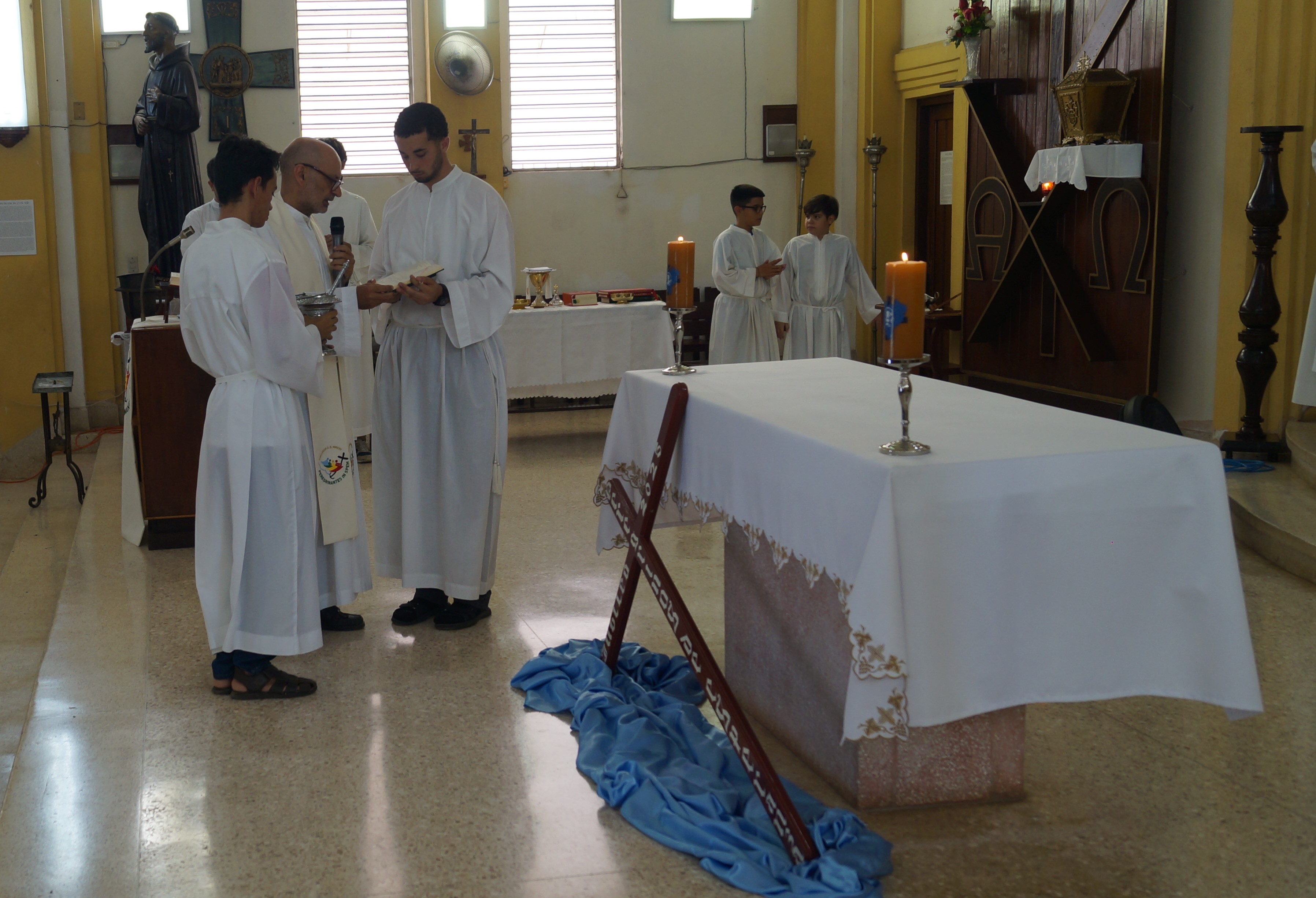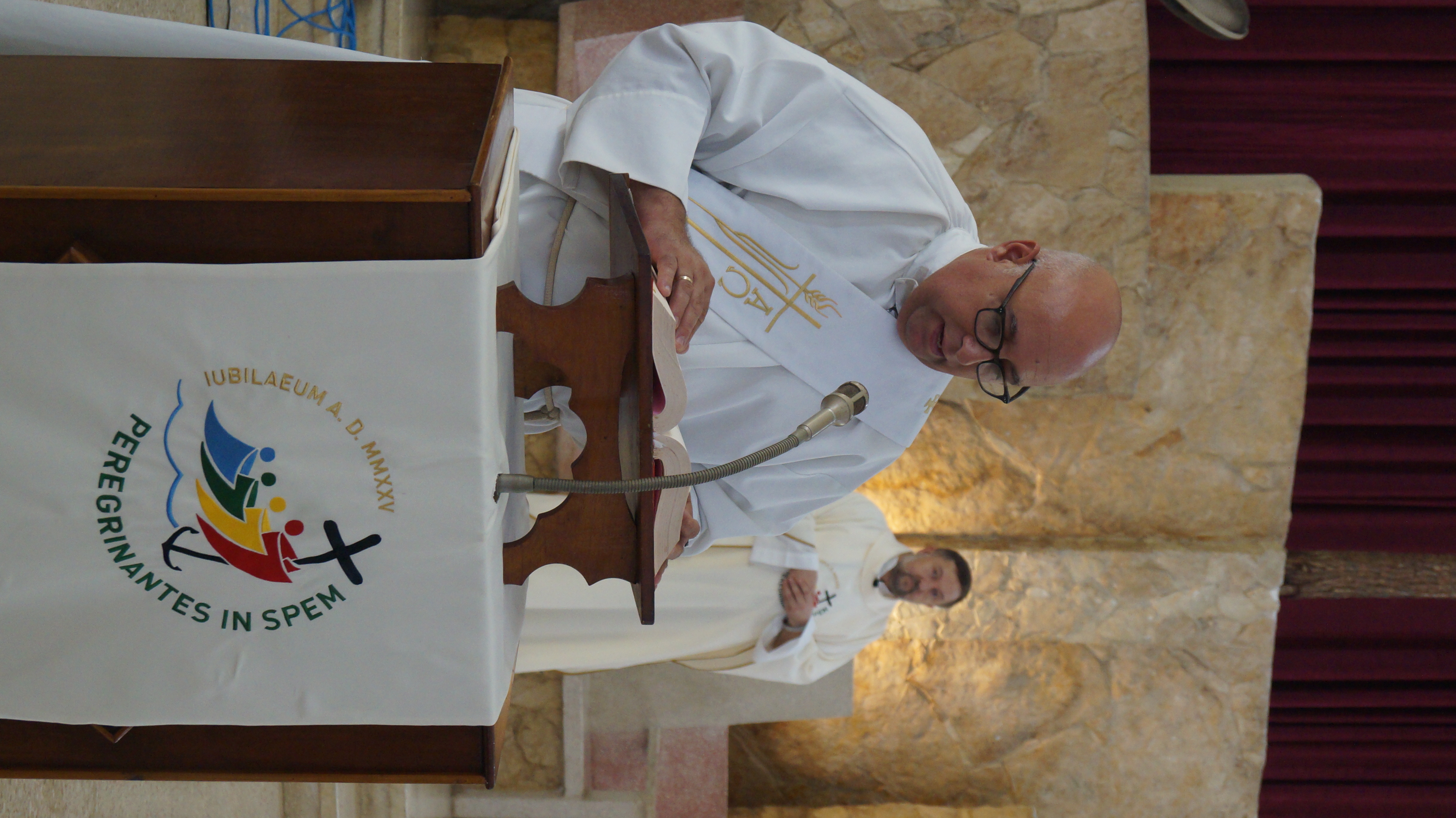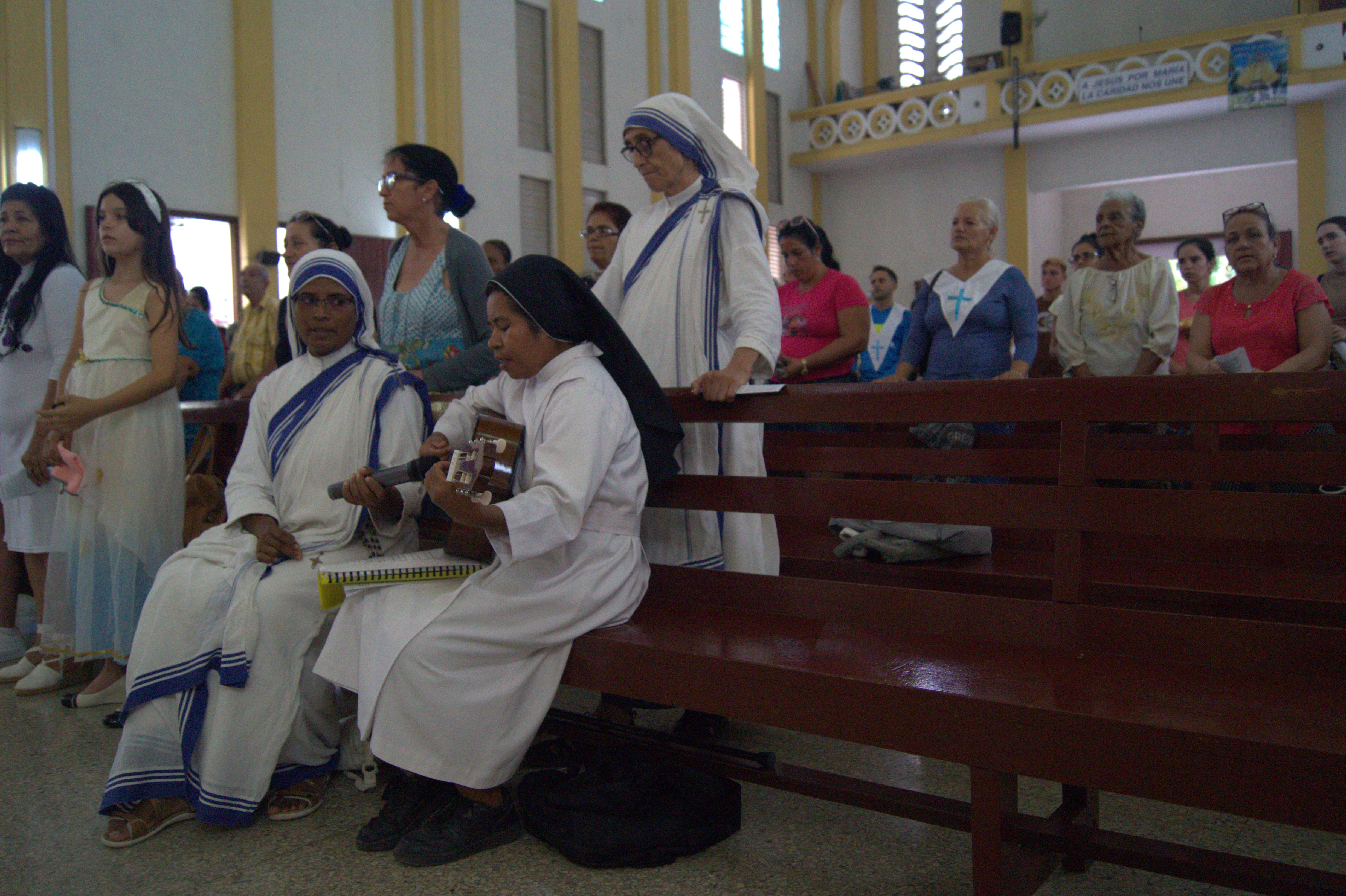 Peregrinación hacia el Templo Jubilar precedidos por el estandarte con la imagen de María Inmaculada de Chambas